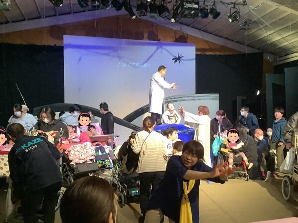 2月25日(火)に「権藤説子presentsバリアフリー演劇『星の王子さま』」の公演がありました。本校の体育館にダイナミックなステージを設営し、本場の劇場の雰囲気を感じたり、味わったりすることができました。公演は、午前の部と午後の部で2回公演し、午前は小学部の児童、午後は中学部の生徒が鑑賞しました。本校の職員も、地理学者や呑み助の役で参加したり、児童生徒もステージに上がって役者さんと一緒に動いたり、歌ったりしました。参加者全員が一体となって楽しむことができました。