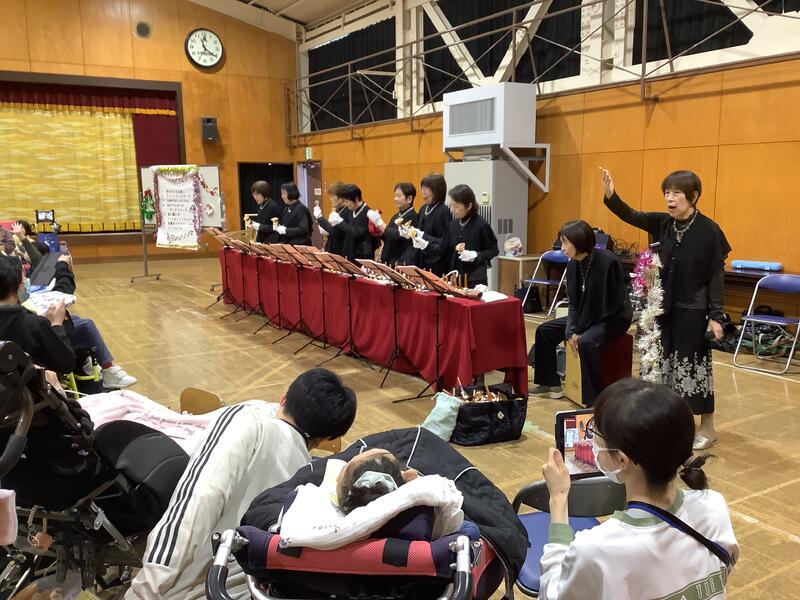 7/10(木)にボランティアアンサンブルマミーズさんによる演奏会を行いました。校歌や「イッツ ア スモール ワールド」など児童生徒になじみ深い曲の演奏をしていただきました。今年のプログラムでは、最後に「ストーリーズ」といって、「となりのトトロ」の演奏を聴きながらお話(ストーリー)を聞くという新しいスタイルの内容も取り入れてくださり、見たり、聞いたりしながら楽しい時間を過ごしました。次回は、7/17(木)に来校していただく予定になっています。